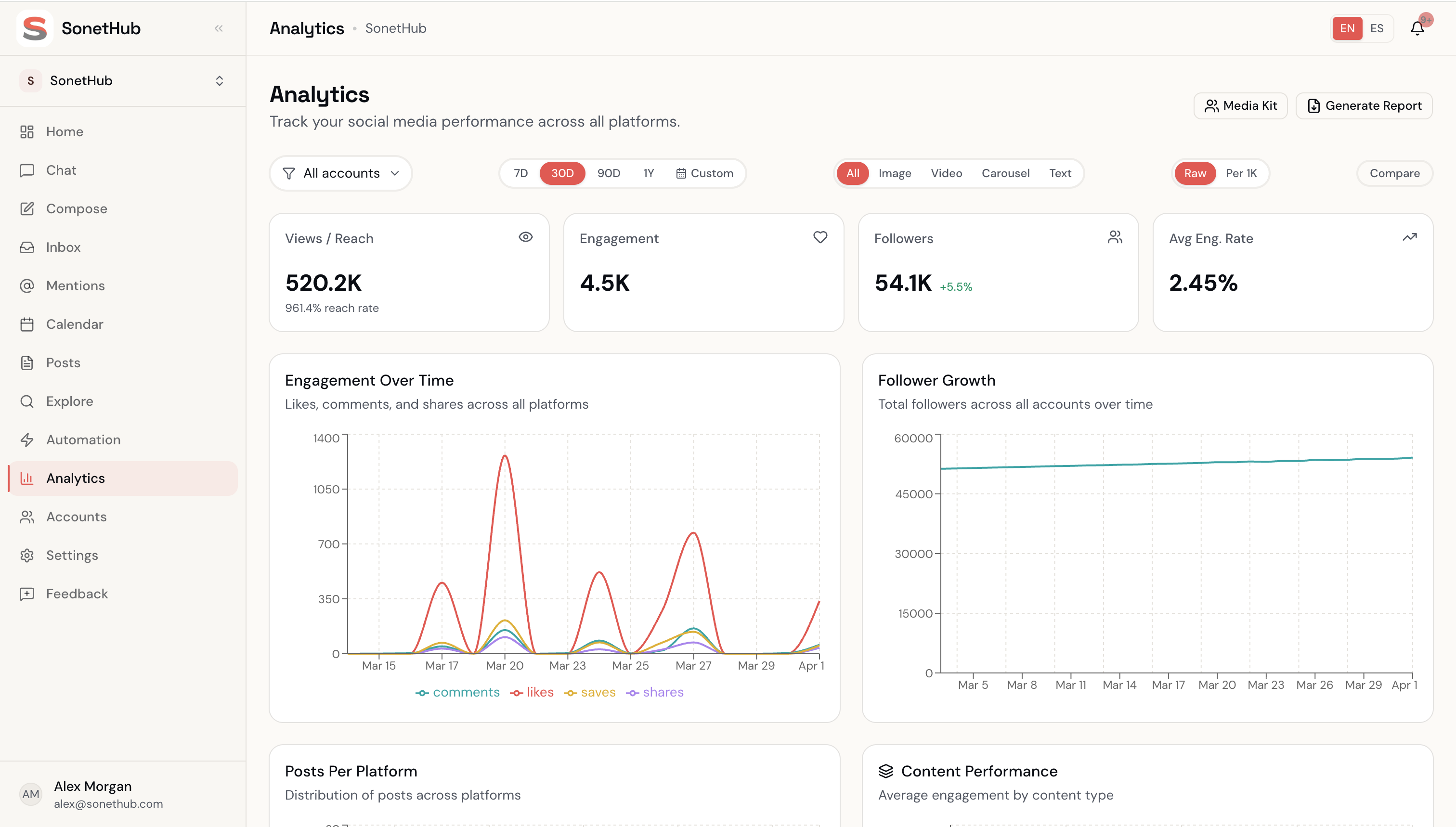 SonetHub has a free plan. No credit card, no trial that auto-charges you. Connect your accounts, try the AI, decide for yourself.